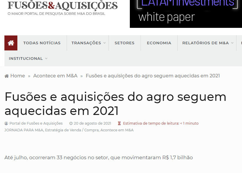 O mês de agosto ainda não terminou, mas já houve pelo menos três grandes operações de fusão e aquisição entre empresas do agronegócio no período.