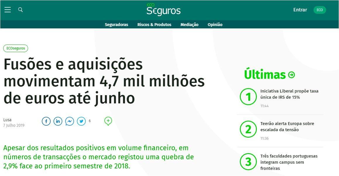 Fusões e aquisições movimentam 4,7 mil milhões de euros até junho