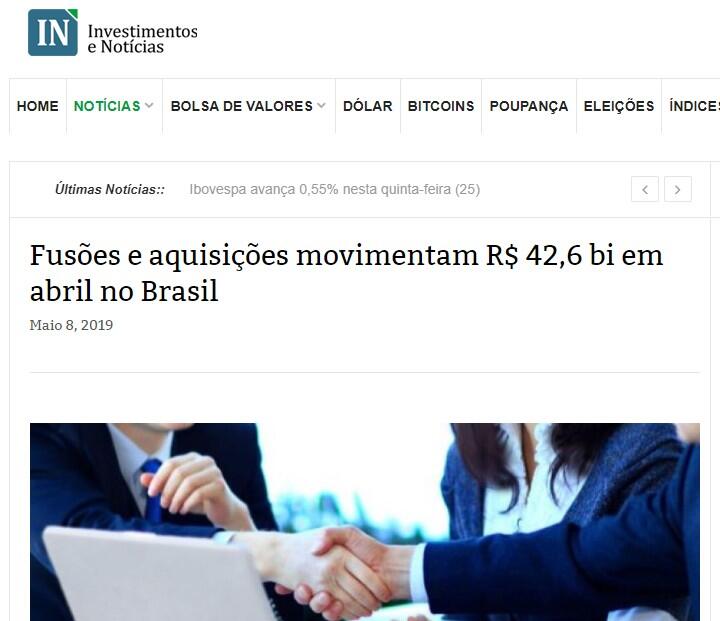 Fusões e aquisições movimentam R$ 42,6 bi em abril no Brasil