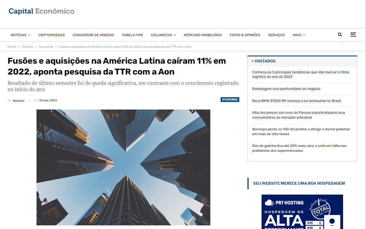 Fusões e aquisições na América Latina caíram 11% em 2022, aponta pesquisa da TTR com a Aon