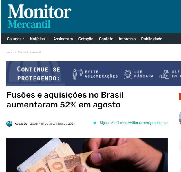 Fusões e aquisições no Brasil aumentaram 52% em agosto