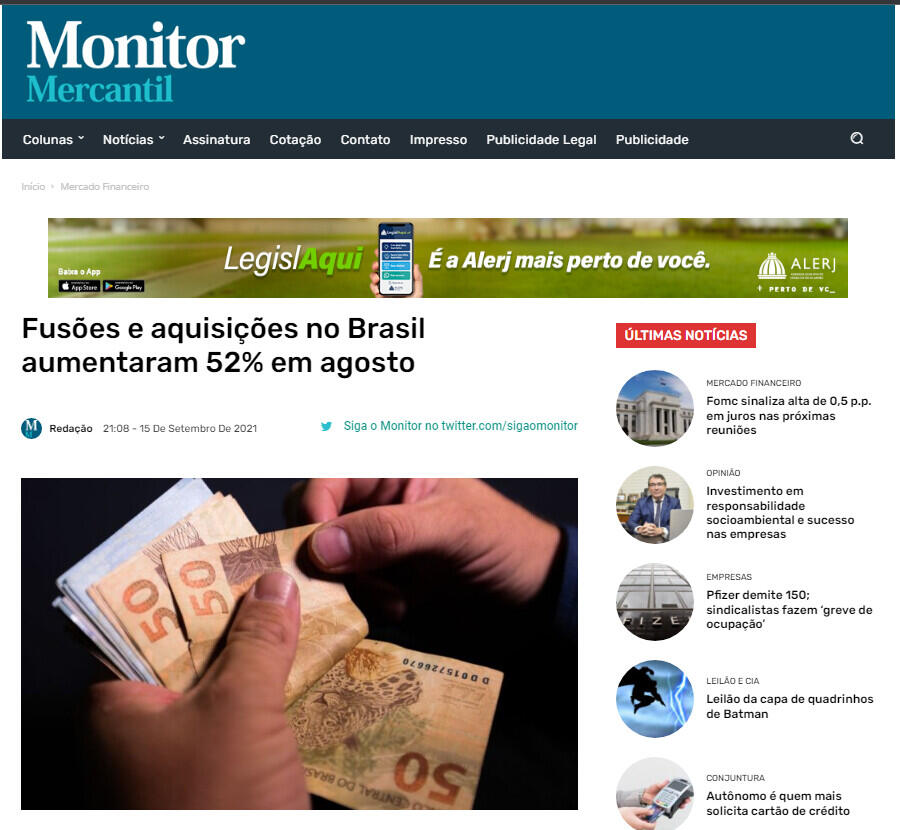 Fusões e aquisições no Brasil aumentaram 52% em agosto