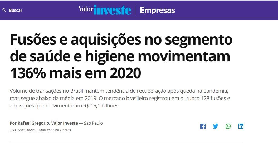 Fusões e aquisições no segmento de saúde e higiene movimentam 136% mais em 2020