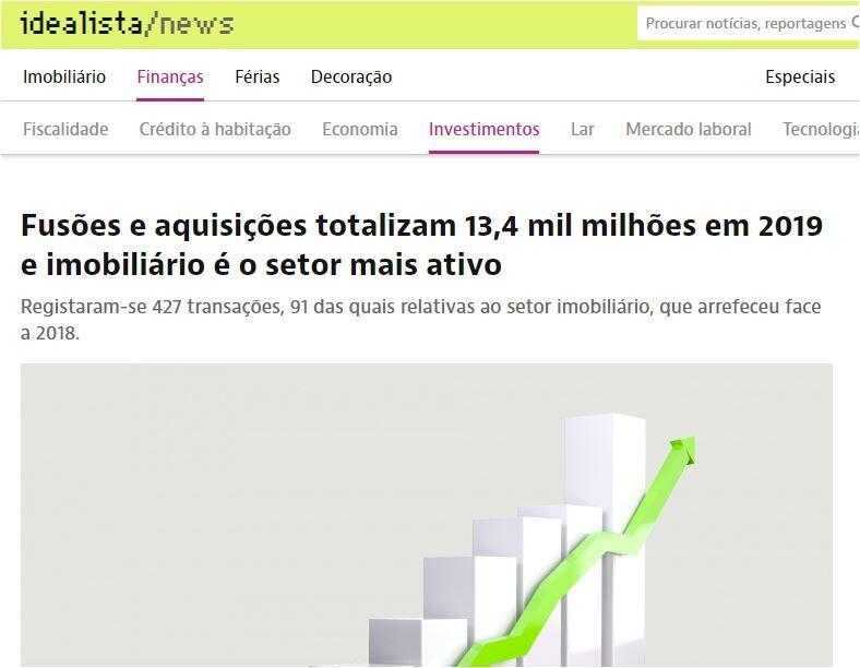 Fusões e aquisições totalizam 13,4 mil milhões em 2019 e imobiliário é o setor mais ativo