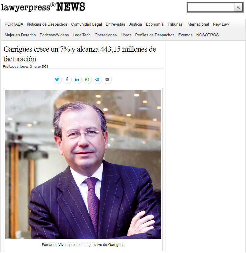 “Sin duda son unos buenos resultados, logrados gracias al trabajo de nuestro equipo y a la confianza de los clientes. Nos animan a seguir empeñados en el esfuerzo de atraer el mejor talento para ofrecer la máxima calidad de servicio y anticiparnos a las necesidades de nuestros clientes”, afirma Fernando Vives, presidente ejecutivo de Garrigues.