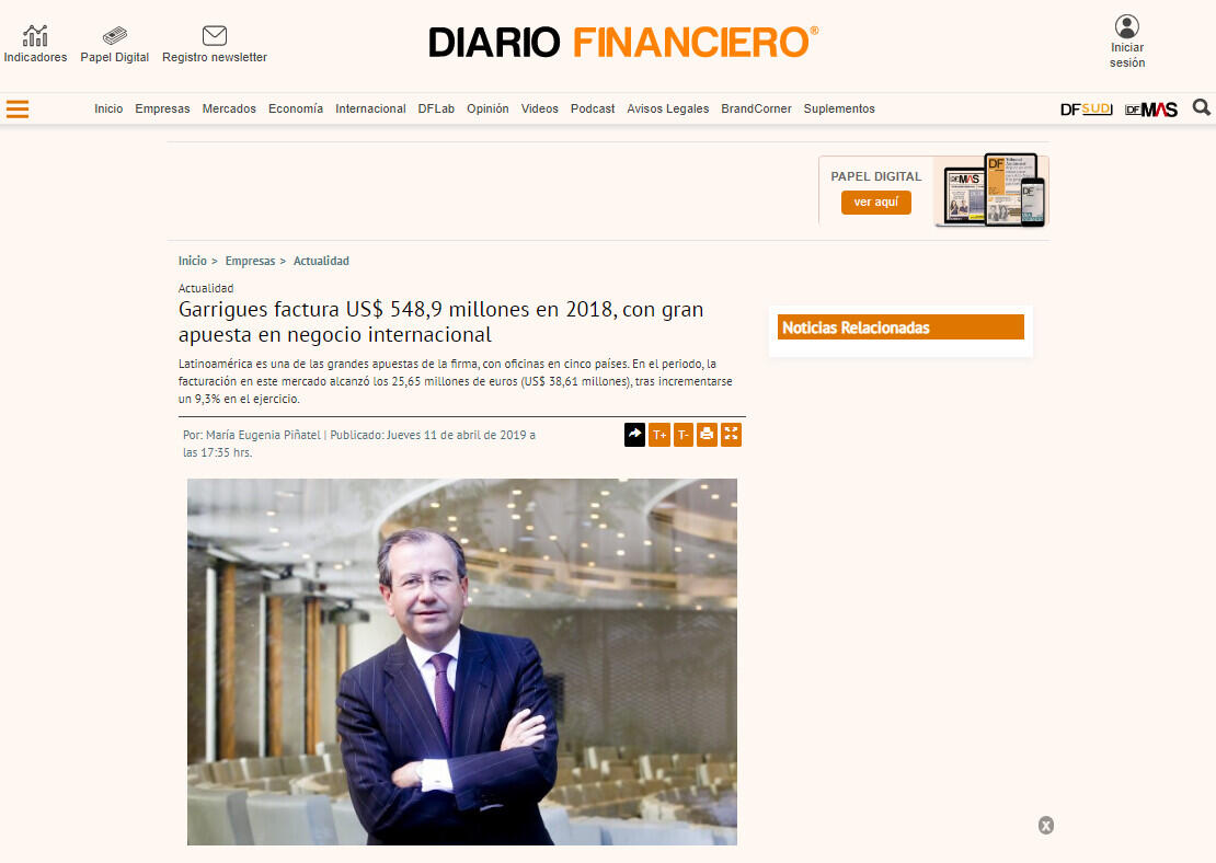 Latinoamérica es una de las grandes apuestas de la firma, con oficinas en cinco países. En 2018, la facturación en este mercado alcanzó los 25,65 millones de euros (US$ 38,61 millones), tras incrementarse un 9,3% en el ejercicio (en moneda local, el crecimiento ha sido del 19%). En los últimos cinco años, el aumento ha sido del 586%. El pasado año destacó también el crecimiento de Portugal, del 16%, país en el que Garrigues tiene dos oficinas.
