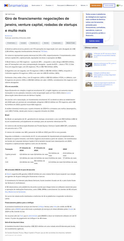 Especificamente em relação a negócios envolvendo VC, a região registrou um aumento nessas transações no ano passado, levando a uma recuperação após um fraco 2023, disse a Lavca (Associação Latino-Americana de Venture Capital).