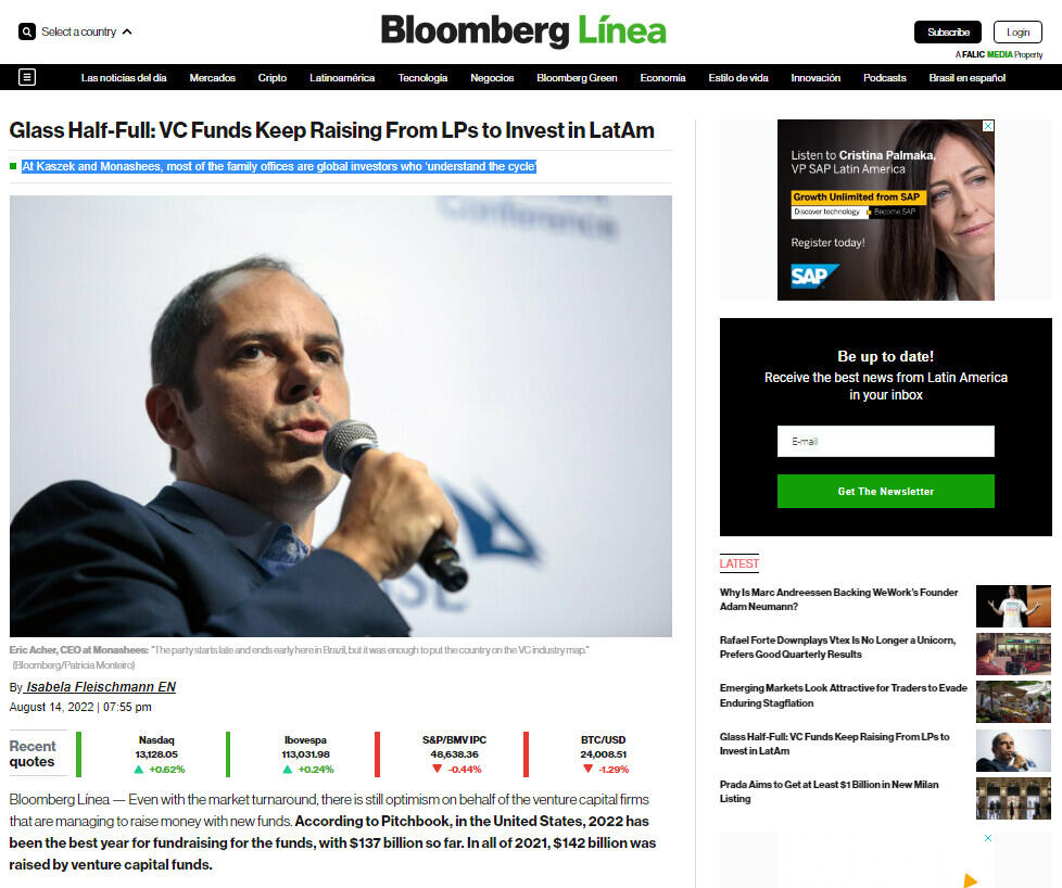 At Kaszek, 90% of LPs are from outside Latin America: they are in the United States, Europe or Asia. "They've lived through that cycle and they're still thrilled with Latin America. There will be a lot of capital going to managers.", said Kaszek partner Santiago Fossatti during an ABVCAP (Brazilian Private Equity and Venture Capital Association) event last week.