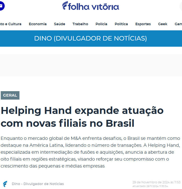 Enquanto o mercado global de M&A enfrenta desafios, o Brasil se mantém como destaque na América Latina, liderando o número de transações. A Helping Hand, especializada em intermediação de fusões e aquisições, anuncia a abertura de oito filiais em regiões estratégicas, visando reforçar seu compromisso com o crescimento das pequenas e médias empresas