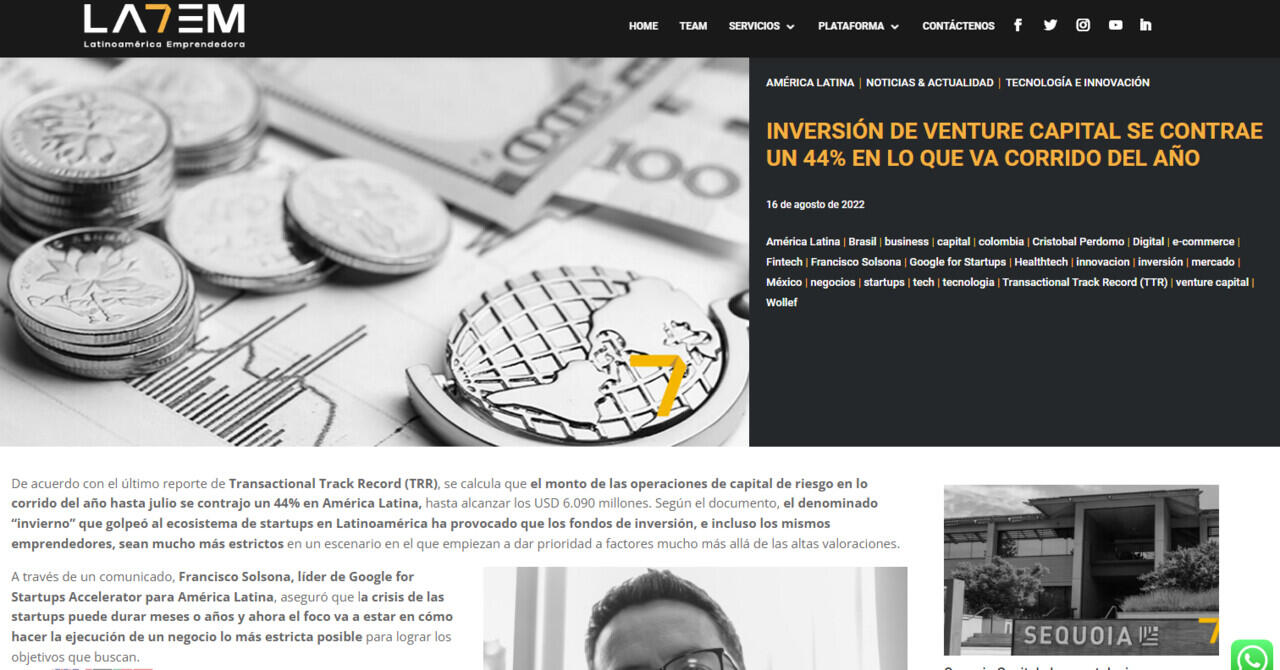 De acuerdo con el último reporte de Transactional Track Record (TRR), se calcula que el monto de las operaciones de capital de riesgo en lo corrido del año hasta julio se contrajo un 44% en América Latina, hasta alcanzar los USD 6.090 millones. Según el documento, el denominado “invierno” que golpeó al ecosistema de startups en Latinoamérica ha provocado que los fondos de inversión, e incluso los mismos emprendedores, sean mucho más estrictos en un escenario en el que empiezan a dar prioridad a factores mucho más allá de las altas valoraciones.