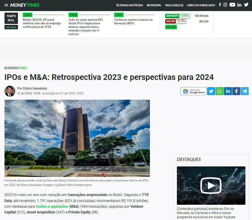 IPOs e M&A: Retrospectiva 2023 e perspectivas para 2024