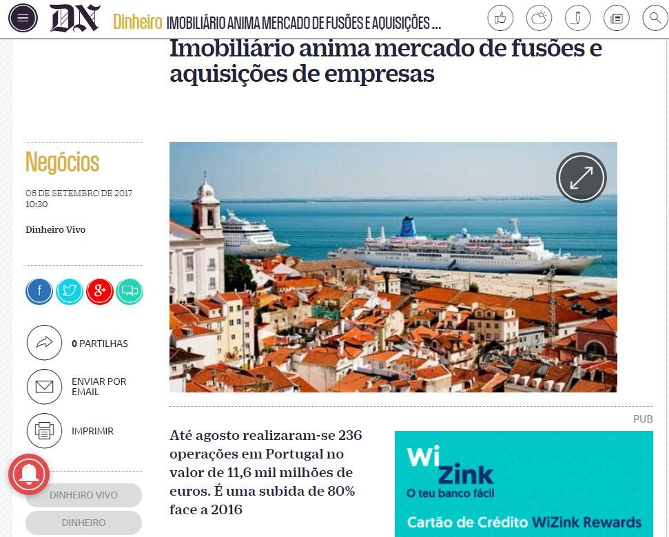 Até agosto realizaram-se 236 operações em Portugal no valor de 11,6 mil milhões de euros. É uma subida de 80% face a 2016