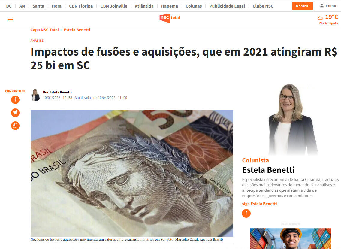 Impactos de fusões e aquisições, que em 2021 atingiram R$ 25 bi em SC