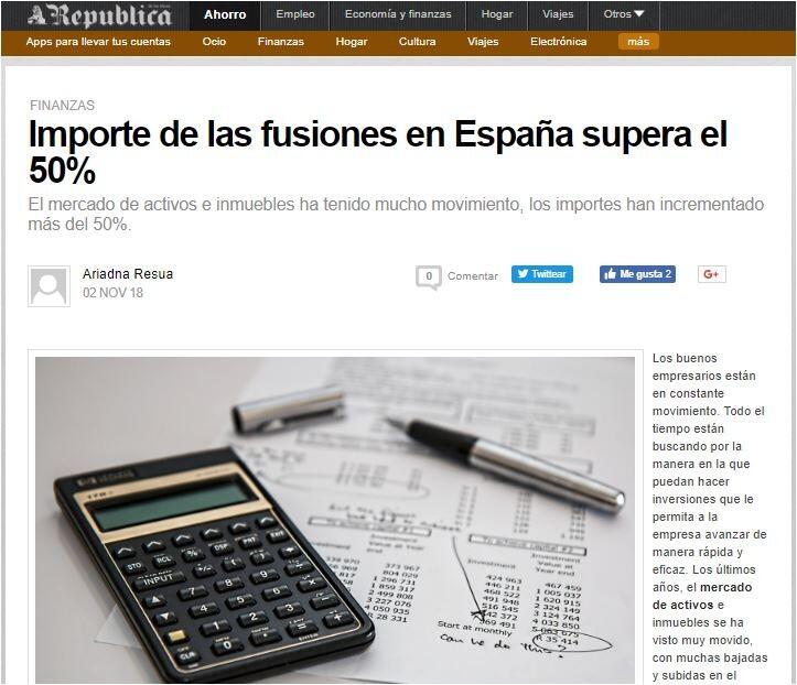 - La industria más movida es la empresa inmobiliaria. Tal parece que los inmuebles son los activos que están siendo más demandados en este instante de las finanzas española, seguido del área tecnológica y de último se encuentra el internet, aun siendo un servicio tan importante y fundamental para la vida actual.