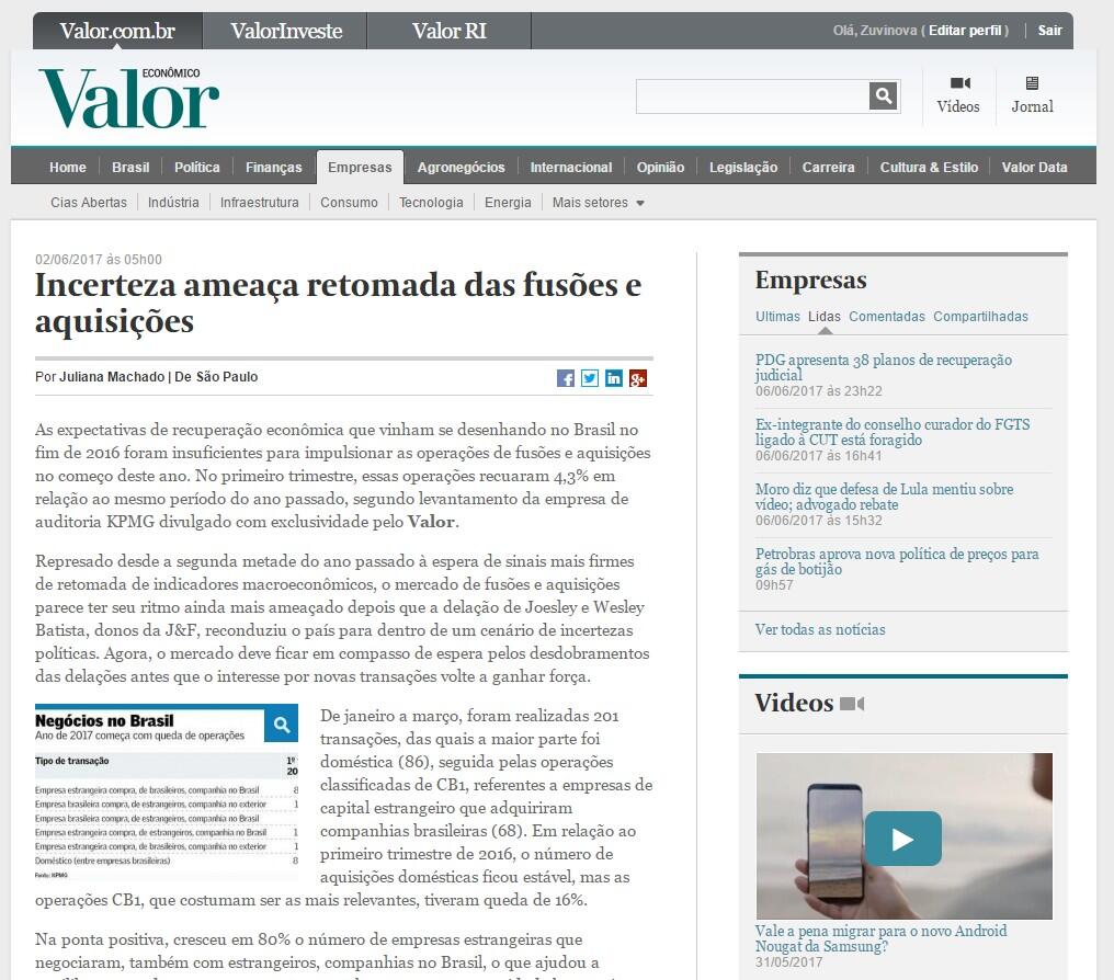 De acordo com ele, sem rupturas no cenário político e econômico, 2017 poderia mostrar uma melhora ante o baixo desempenho dos últimos dois anos. Com a delação dos donos da J&F, porém, o prolongamento da indefinição política tem força para comprometer ou atrasar as transações que já estão em negociação. "Ainda é cedo para dizer. O número este ano talvez não caia ante 2016, mas é possível que não vejamos uma retomada que já era esperada", afirma.