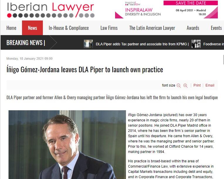 DLA Piper partner and former Allen & Overy managing partner Íñigo Gómez-Jordana has left the firm to launch his own legal boutique