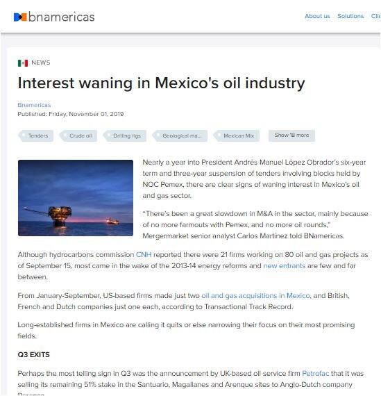 “Companies that originally thought of going into Mexico because they wanted more than five blocks ended up only having three blocks because there are no more oil auctions, and they're deciding to exit the country.”