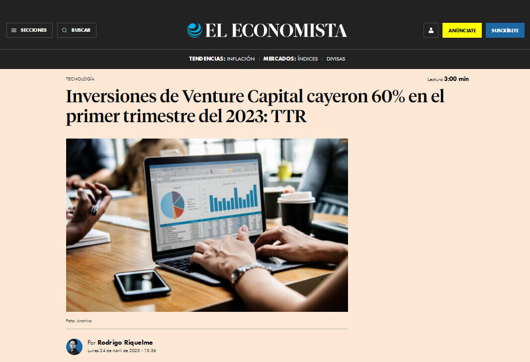 Inversiones de Venture Capital cayeron 60% en el primer trimestre del 2023: TTR