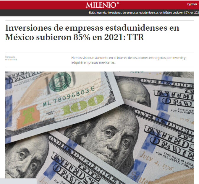 El año pasado las compañías estadunidenses, que son las que realizan más adquisiciones de empresas mexicanas, incrementaron sus inversiones en el país en 85 por ciento respecto a 2020, informó la consultora Transactional Track Record (TTR)