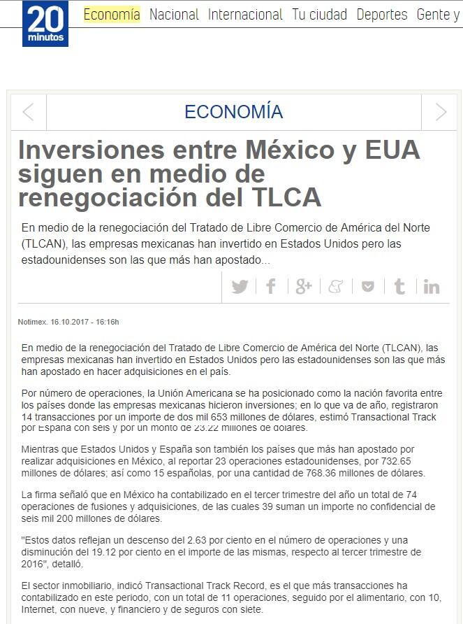 En medio de la renegociación del Tratado de Libre Comercio de América del Norte (TLCAN), las empresas mexicanas han invertido en Estados Unidos pero las estadounidenses son las que más han apostado en hacer adquisiciones en el país.