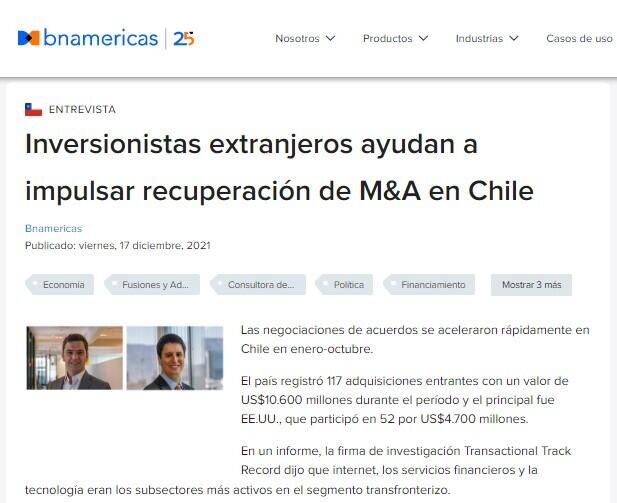 BNamericas: Con respecto a las transacciones en Chile, ¿qué tendencias se observan?