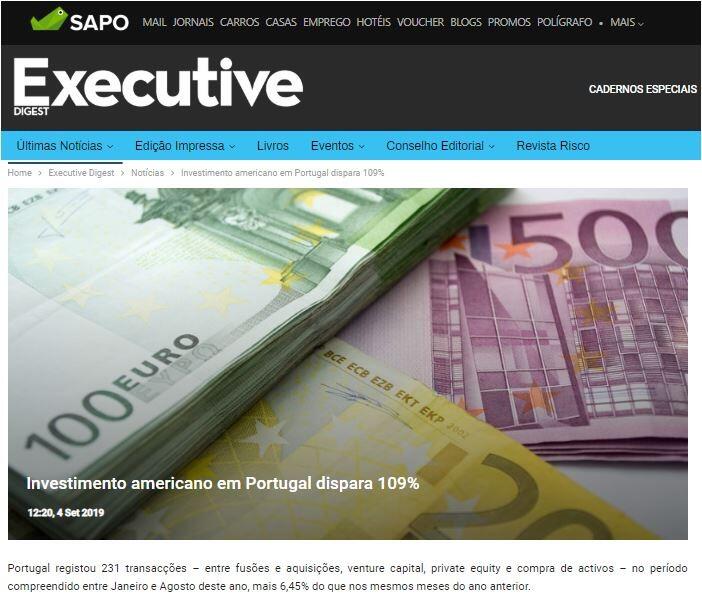 O relatório indica que «os anúncios de compra e venda de participações que envolveram a aquisição de empresas portuguesas por estrangeiras com sede nos Estados Unidos registaram um aumento de 109%». Nos primeiros oito meses do ano foram anunciados 23 negócios, com um valor anunciado de 1,16 mil milhões de euros, um número que supera o total de 2018, que fechou com 22. «Um exemplo recente deste tipo de transacção é a aquisição realizada pela Mobileum de 100% da empresa lusa WeDo Technologies por 70 milhões de dólares», refere o documento.