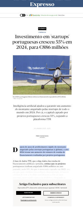 A base de dados TTR, que colige dados das rondas de financiamento públicas e privadas, estima que os projetos portugueses tenham angariado €886 milhões no ano passado, mais 55% do que o montante captado em 2023, ano em que, para combater uma inflação descontrolada, os bancos centrais do euro e do dólar continuaram a subir as taxas diretoras, encarecendo o preço do dinheiro e obrigando os investidores a fazer apostas mais criteriosas.