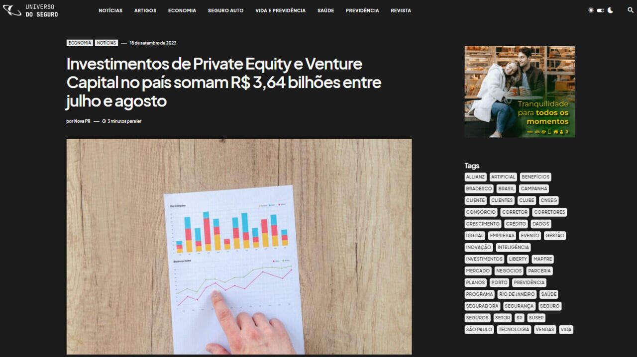 Na soma dos oito primeiros meses de 2023, os investimentos em Private Equity somam R$ 11,4 bilhões, 12% mais que o mesmo período de 2022. Já no Venture Capital , houve uma queda de 70% nos valores aportados neste mesmo período de comparação, que somaram R$ 4,2 bilhões até agora em 2023.