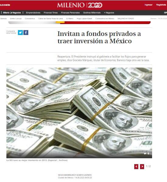 La secretaria de Economía, Graciela Márquez, invitó a los fondos de capital privado a voltear hacia México a fin de aumentar los flujos de inversión extranjera directa (IED) luego de que éstos se vieran reducidos a escala mundial a consecuencia de la crisis económica generada por la pandemia de covid-19.