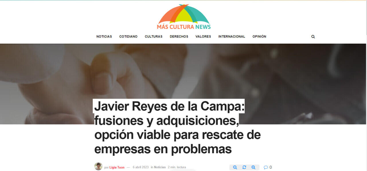 Javier Reyes de la Campa: fusiones y adquisiciones, opción viable para rescate de empresas en problemas