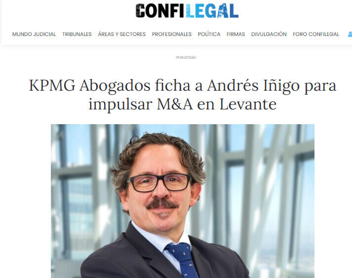 KPMG Abogados ficha a Andrés Iñigo para impulsar M&A en Levante
