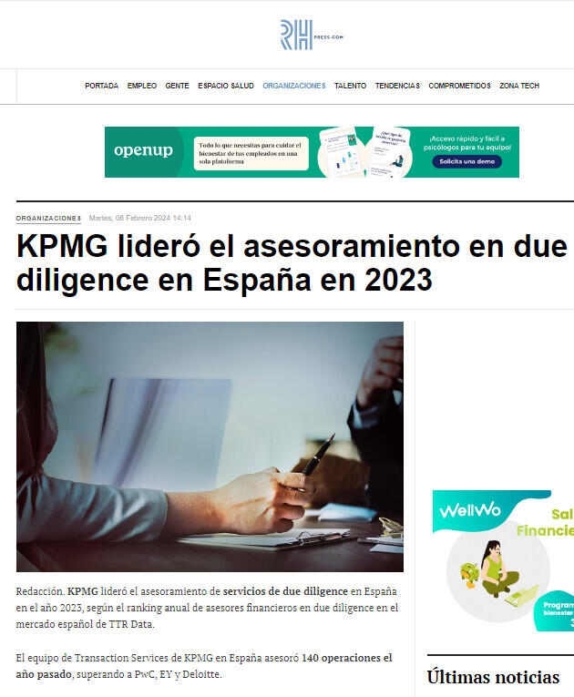 KPMG liderķ el asesoramiento en due diligence en Espaņa en 2023
