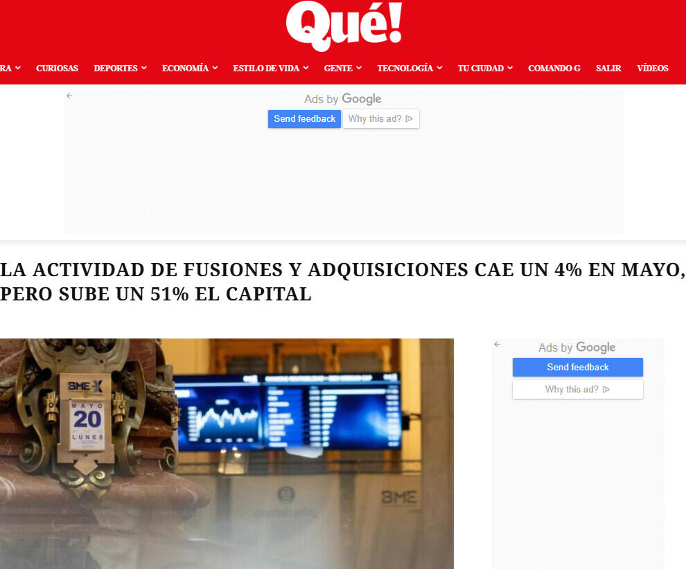 LA ACTIVIDAD DE FUSIONES Y ADQUISICIONES CAE UN 4% EN MAYO, PERO SUBE UN 51% EL CAPITAL