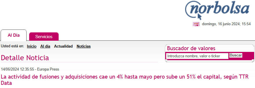 El informe de TTR Data también publica los rankings de asesoramiento financiero y jurídico de 2024 en fusiones y adquisiciones, 'private equity', 'venture capital' y mercado de capitales, donde se informa de la actividad de las firmas destacadas por número de transacciones y por importe de las mismas.