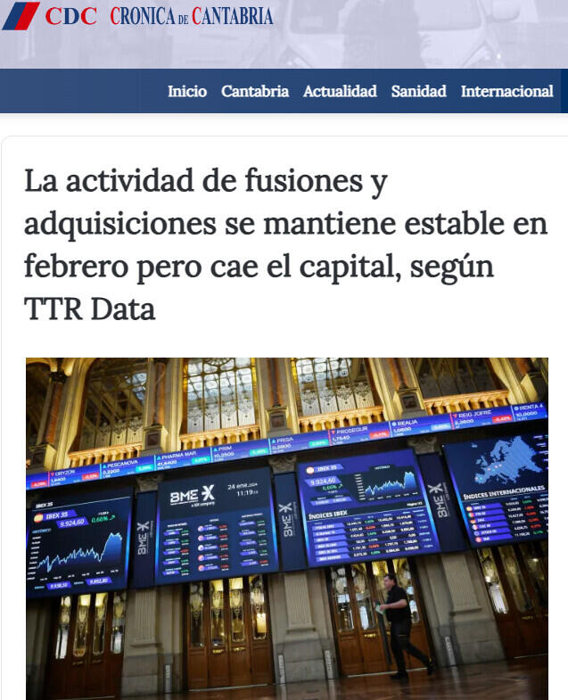 La actividad de fusiones y adquisiciones se mantiene estable en febrero pero cae el capital, según TTR Data