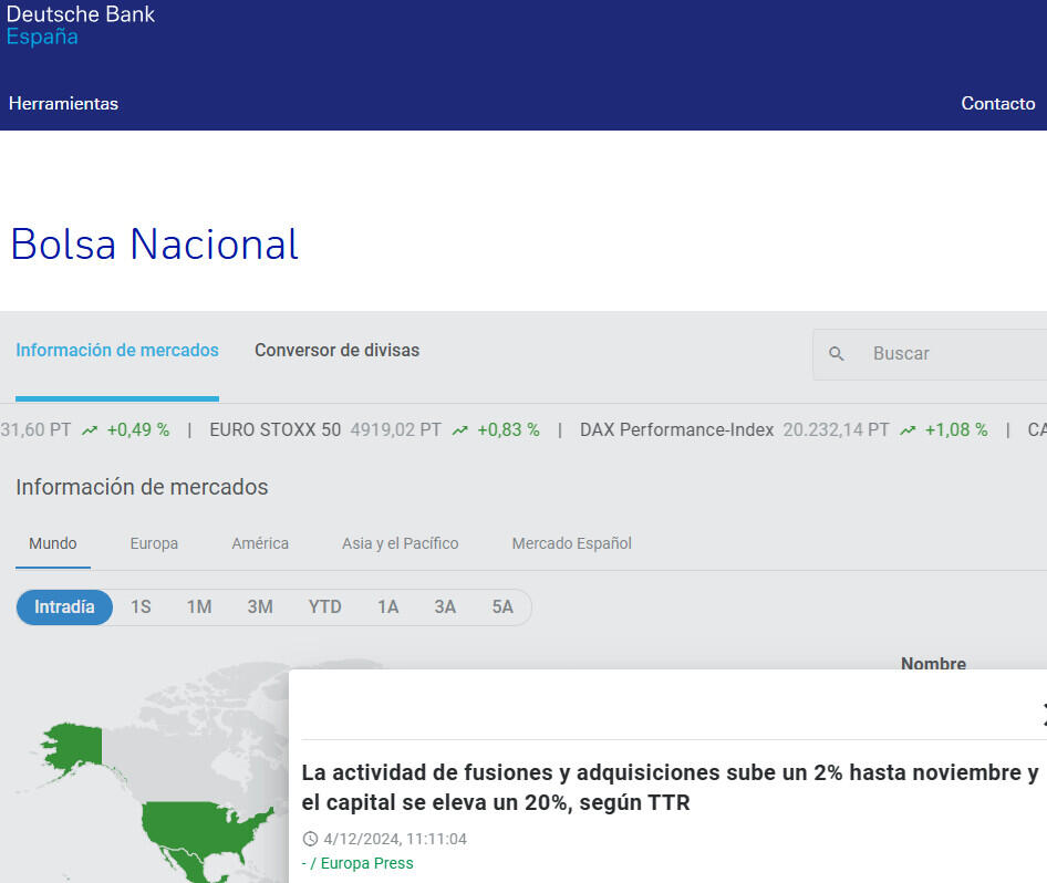 El mercado transaccional español ha registrado hasta noviembre un total de 2.939 acuerdos de fusiones y adquisiciones, lo que supone un ascenso del 2% respecto al mismo periodo de 2023, y, en paralelo, el importe de estas adquisiciones en lo que va de año ha sido de 89.764 millones de euros, un 20% más del capital movilizado en los once primeros meses de 2023, según el informe divulgado este miércoles por TTR Data.