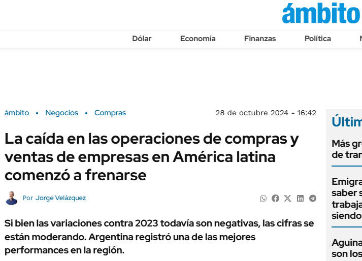 “Chile y México también impulsan el crecimiento en el número de acuerdos en la región, principalmente a través de transacciones con fondos soberanos, private equities y fondos de pensiones. Por su parte, Argentina también busca su recuperación económica, lo que puede acercar a inversionistas internacionales a futuro”, añadió.