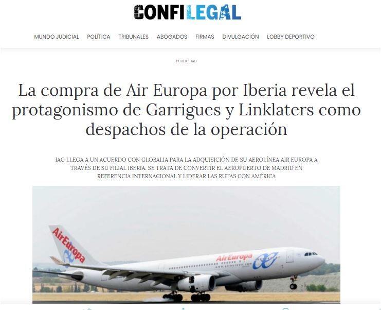 En esta operación han tenido un protagonismo relevante dos firmas legales como han sido Garrigues, asesor del consorcio International Airlines Group (IAG) en esta adquisición, junto a Linklaters asesor jurídico de Globalia.