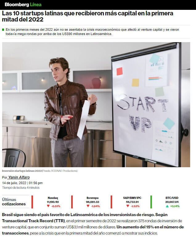 Brasil sigue siendo el país favorito de Latinoamérica de los inversionistas de riesgo. Según Transactional Track Record (TTR), en el primer semestre de 2022 se realizarons 375 rondas de inversión de venture capital, que en conjunto suman US$3,1 millones de dólares. Un aumento del 15% en el número de transacciones, pese a la crisis que en la primera mitad del año comenzó a mostrar sus indicios.