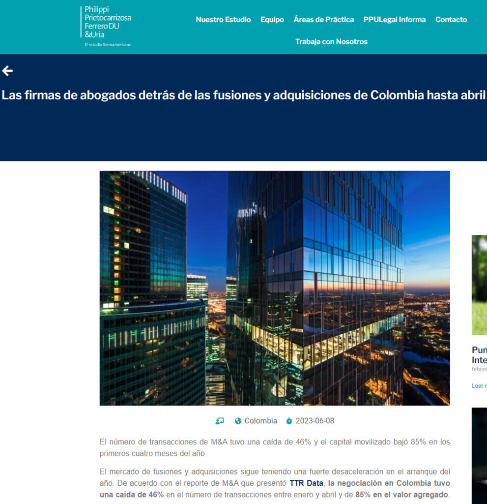 Las firmas de abogados detrás de las fusiones y adquisiciones de Colombia hasta abril