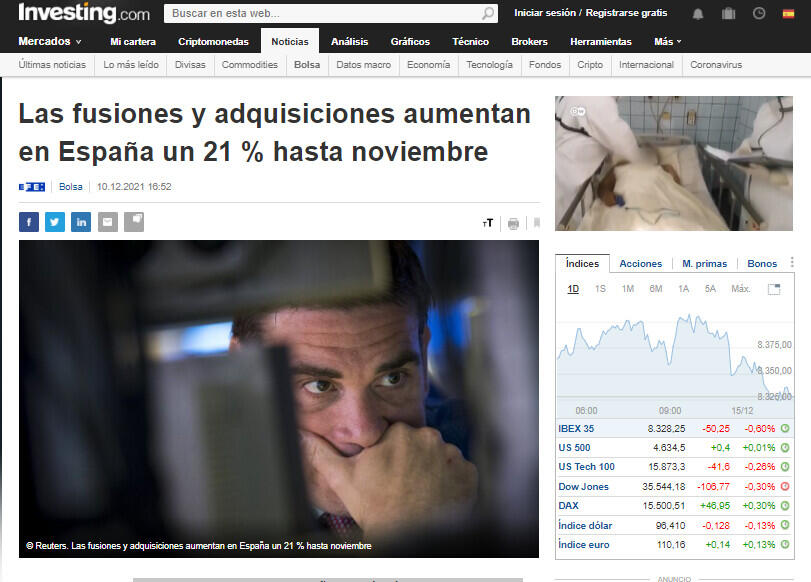 En el segmento de adquisiciones de activos, hasta noviembre se registraron 646 fusiones y adquisiciones por valor de 12.233 millones, un 19 % más de operaciones que hace un año pero casi un 47 % menos en cuanto a la inversión.