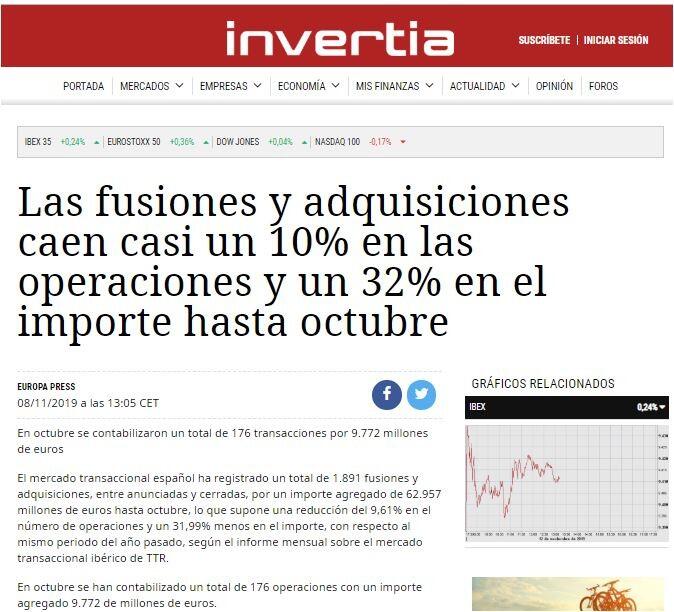 En octubre se contabilizaron un total de 176 transacciones por 9.772 millones de euros