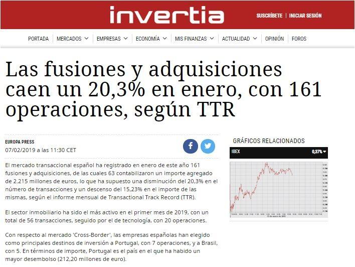 En enero de 2019, TTR ha seleccionado como transacción destacada la adquisición del 98,83% de Europac por parte de DS Smith, a través de una oferta pública de adquisición.