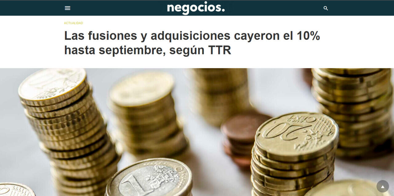 Las fusiones y adquisiciones cayeron el 10% hasta septiembre, según TTR