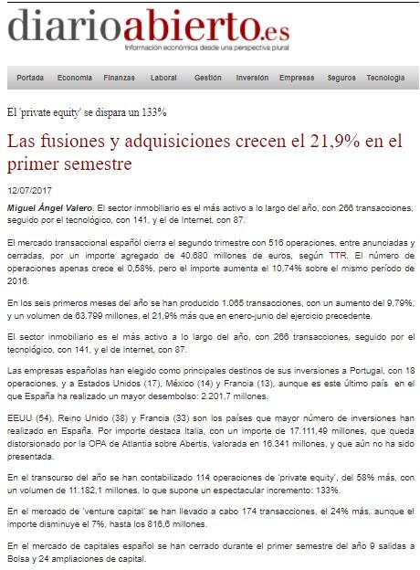 Las fusiones y adquisiciones crecen el 21,9% en el primer semestre