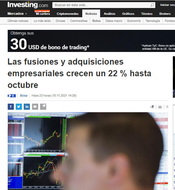 El mercado transaccional español (fusiones y adquisiciones) creció más de un 22 % en los diez primeros meses en comparación con el mismo periodo de 2020, tras registrar 2.205 operaciones, según la consultora Transactional Track Record (TTR).