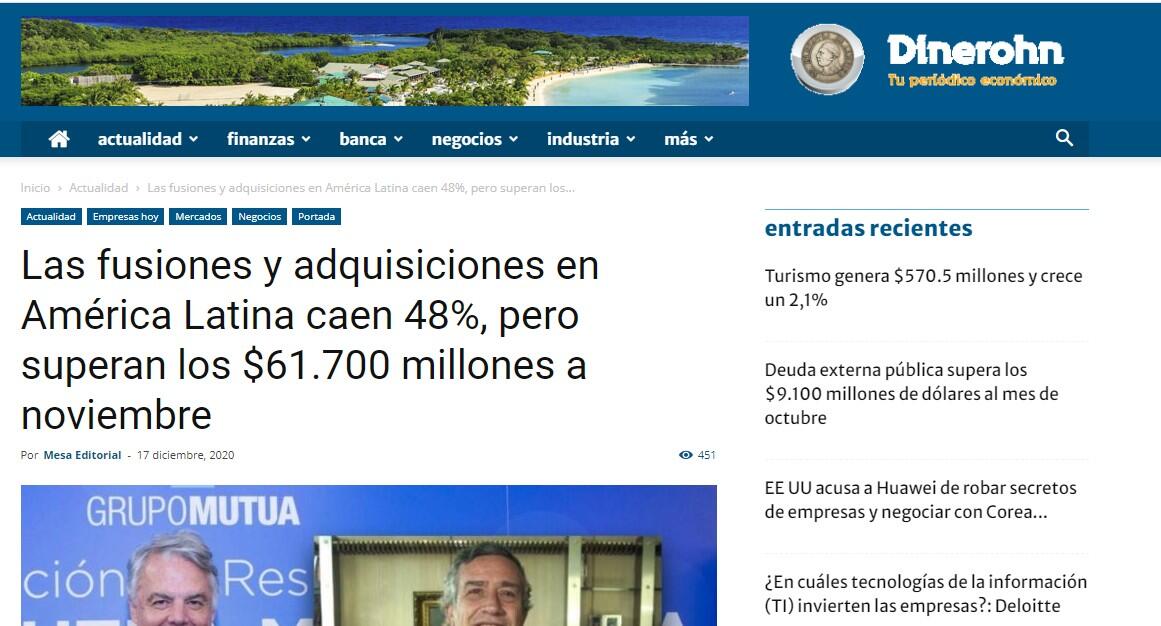 En tanto, entre enero y noviembre de 2020 se han contabilizado 2.035 fusiones y adquisiciones, entre anunciadas y cerradas, por un importe de $us 61.759 millones.
