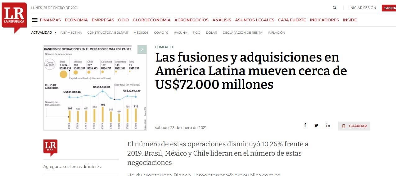 El número de estas operaciones disminuyó 10,26% frente a 2019. Brasil, México y Chile lideran en el número de estas negociaciones