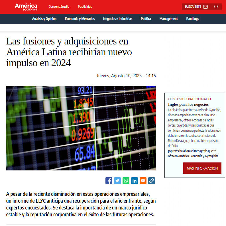 A pesar de la reciente disminución en estas operaciones empresariales, un informe de LLYC anticipa una recuperación para el año entrante, según expertos encuestados. Se destaca la importancia de un marco jurídico estable y la reputación corporativa en el éxito de las futuras operaciones.