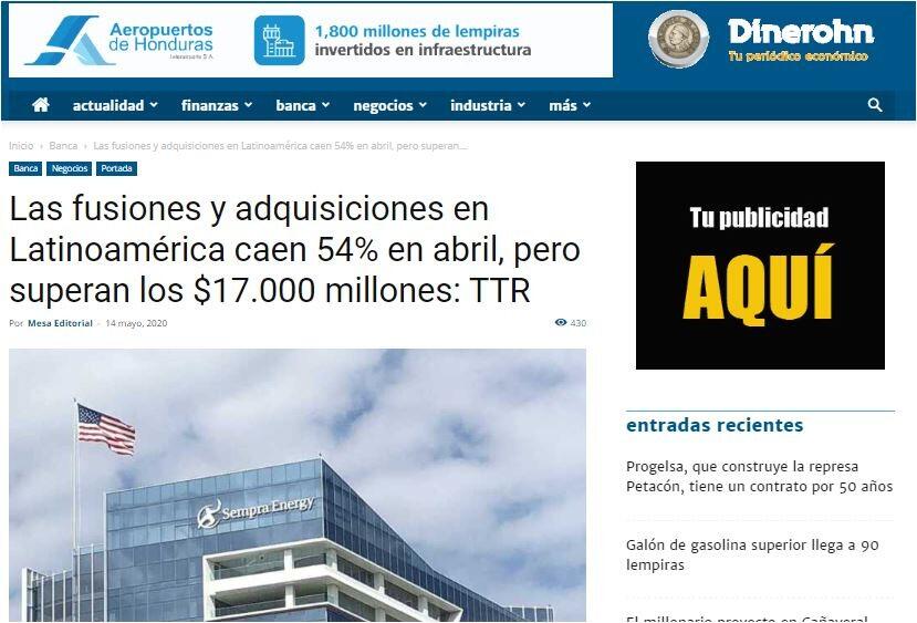La cuarentena por el Covid-19 en Latinoamérica, impacto en las transacciones financieras en el mes de abril. Según el informe mensual de fusiones y adquisiciones de Transactional Track Record (TTR), en abril se concretaron 538 transacciones por un valor de 17.098 millones de dólares.